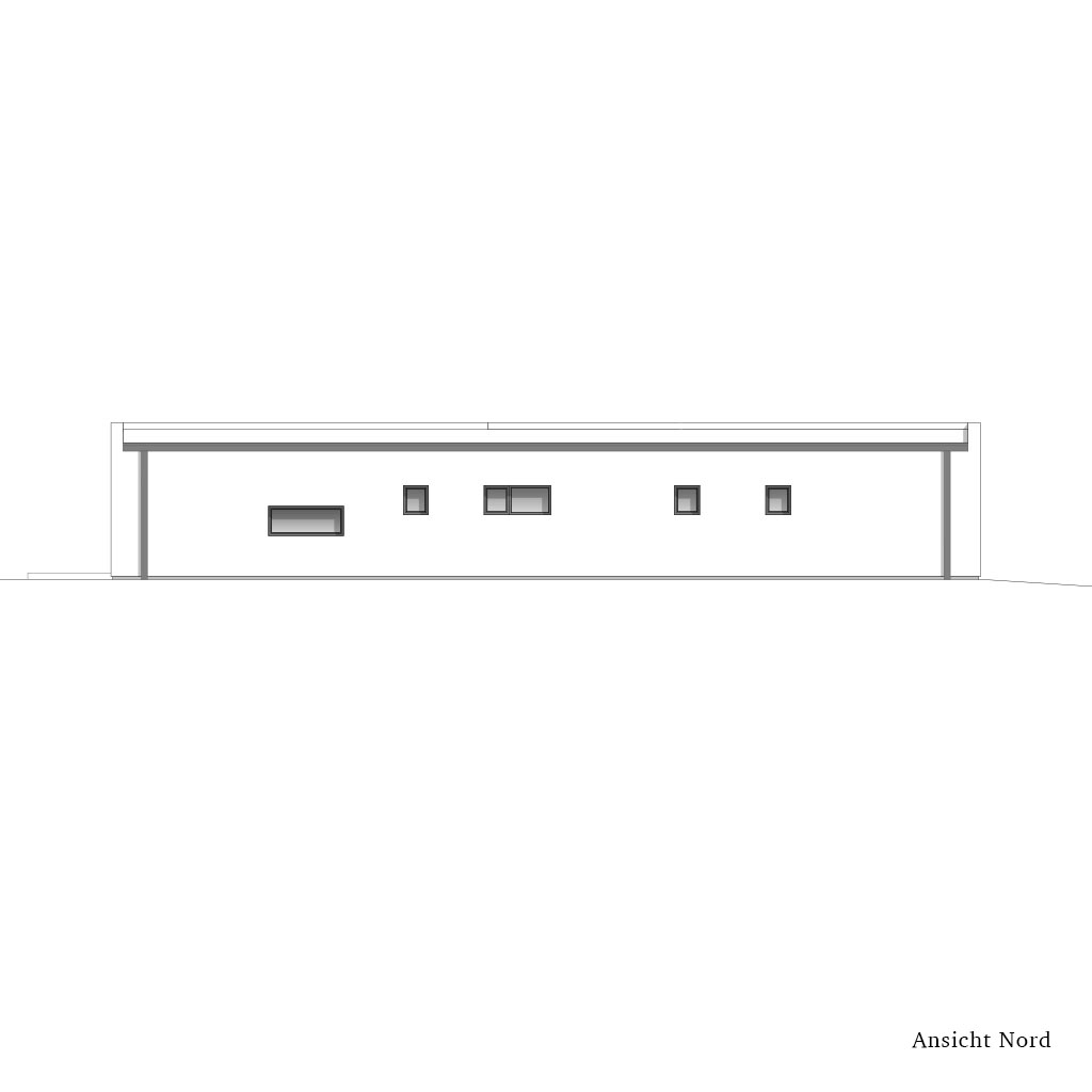 Das Gebäude hat ein leicht geneigtes Pultdach und dank der Gestaltung mit Attika wurde eine klare, geometrische Form erreicht.